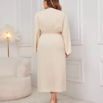 Elegant Long-Sleeve Waist-Cinching Maxi Dress with Irregular Hem – Plus Size