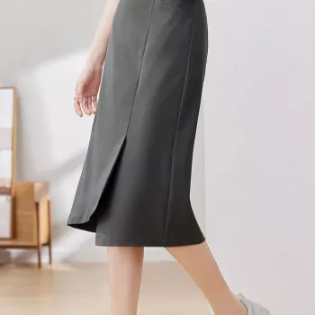 Straight Grey Midi Skirt with Irregular Slit and Pockets – Summer Pencil Fit
